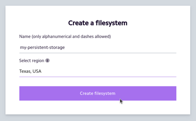 Enter a name and select a region for your file system. Then click Create filesystem.