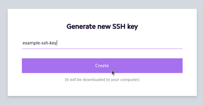 Instead of pasting your public SSH key as instructed, above, click Generate a new SSH key. Type in a name for your key, then click Create.