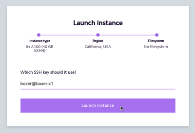 Select the SSH key that you want to use for your instance. Then, click Launch instance.