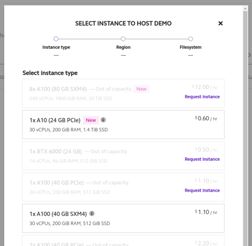 As with other Lambda GPU Cloud on-demand instances, you’re billed for all of the time the instance for your demo is running.