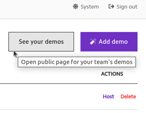 To host a demo that’s already added to your account, in the Demos dashboard, find the row containing the demo you want to host, then click Host.Your new instance will take several minutes to launch and for your demo to become accessible.